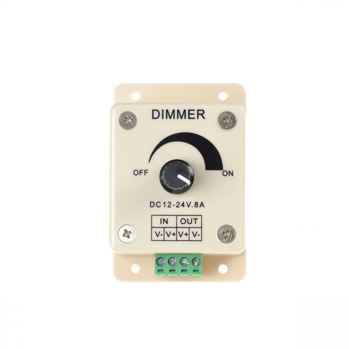 Диммер KNOB 8A Диммеры – это устройства, которые регулируют яркость света, в также позволяют существенно сэкономить на электроэнергии. Диммеры бывают разных конструкций: реостатные (регулировка производится поворотным механизмом), кнопочные, сенсорные. Технические характеристики Мощность усилителя: 72 – 600 Вт; Напряжение: 12 / 24 / 220v; Сила тока усиления: 6 – 16А; Типы диммеров: инфракрасный / радио / стационарный Гарантия: 12 месяцев; Диммеры Venom По типу управления - диммеры Venom разделяют на 3 категории: стационарные, радио, инфракрасные. Стационарный диммер — устройство которое монтируется на поверхность. Управляется с помощью «регулятора» или нажатием на копку или сенсорную панель. Радио диммер (RF) — это устройство с сенсорным или кнопочным пультом, что позволяет более точно выставлять яркость и задавать режимы свечения, мигания и тд. Передача сигнала от пульта до диммера производится с помощью радио канала. Радиус действия радио диммера – до 30м, что придаёт удобности в эксплуатации. Инфракрасный диммер (IR) — устройство с кнопочным пультом, предназначеное для регулировки светового потока. Передача сигнала от пулять производится с помощью инфракрасного канала, что ограничевает радиус действия до нескольки метров.